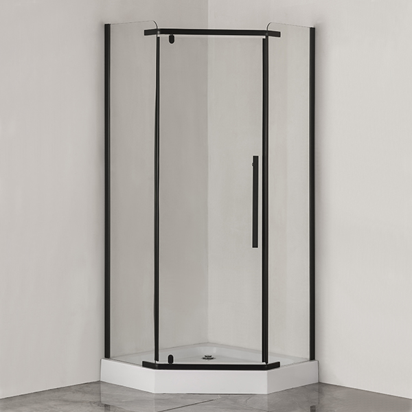 Душевое Ограждение 31N 900х900х2000 Comforty с пятиугольным низким поддоном из белого ABS-пластика. Профиль изготовлен из аллюминия с черным матовым покрытием, стенки и дверца душевого уголка из прозрачного стекла толщиной 6 мм, ручка - нержавеющая сталь. Вертикальное расположение петель препятствует провисанию и перекосу двери.