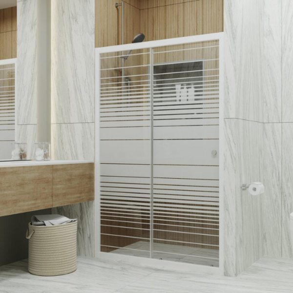 Дверь душевая "Слайд" 100х185 белые полосы Тритон - это идеальная замена обычной подвесной шторе. Сдвижная конструкция обеспечит удобство использования, ограничит падание капель за пределы душевого бокса при приеме душа. Подойдет для проема шириной 98-100см