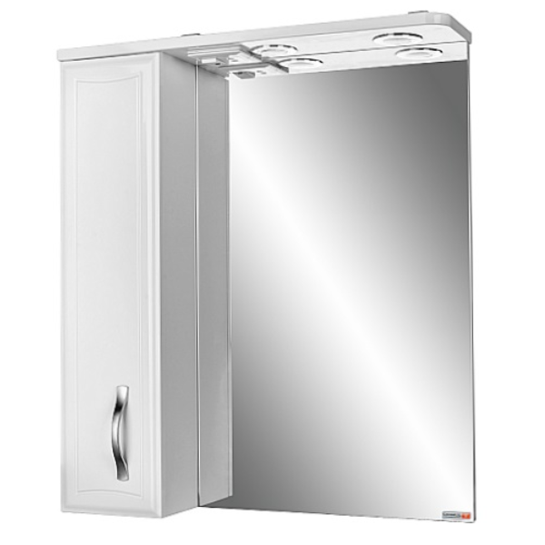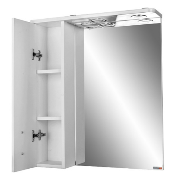 Шкаф-зеркало Блик 55 Идеал Эл. левый DI44145HZ Домино с подсветкой в белом цвете. Шкафчик располагается слева. Фасад всей серии выполнен из ЛДСП (белый шел), а корпус из ЛМДФ (эмаль глянец).Для удобства в использовании на дверцах установлены доводчики. Фурнитура и материалы влагостойкие, что очень важно для маленьких помещений с повышенной влажностью.