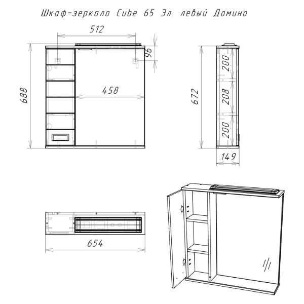 Шкаф-зеркало Cube 65 Эл. левый Домино DC5006HZ