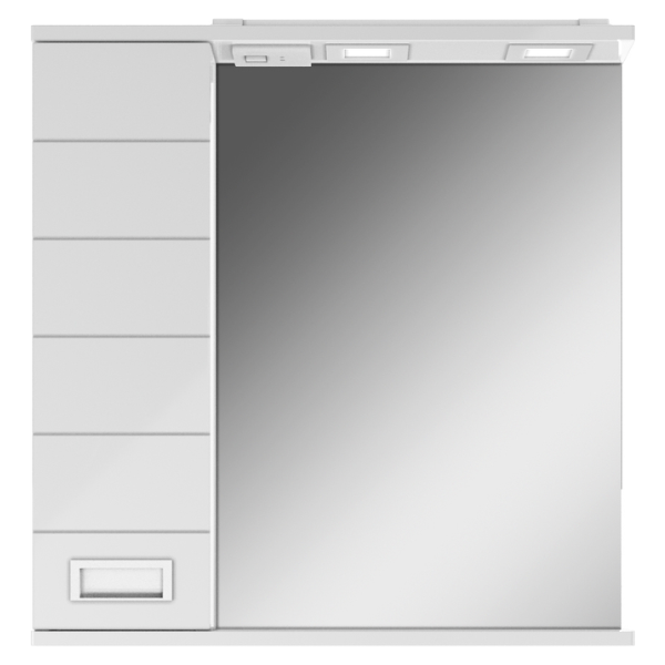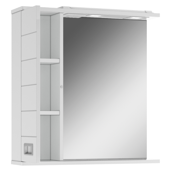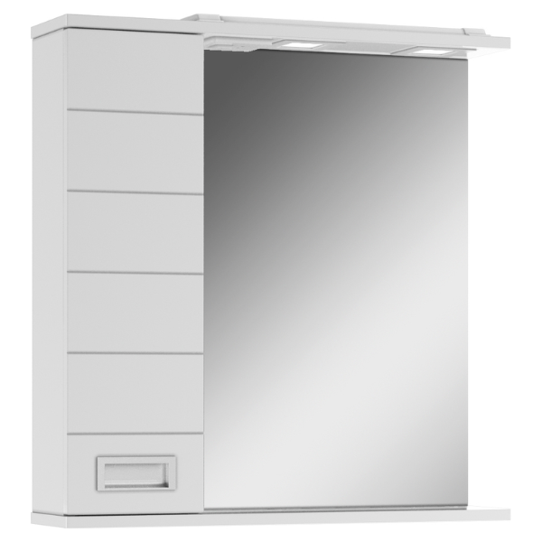 Шкаф-зеркало Cube 65, эл. левый DC5006HZ Домино в белом цвете. Над зеркалом установлена светодиодная подсветка, включатель подсветки снаружи. Корпус выполнен из влагостойкого ЛДСП, покрытого глянцевой эмалью. Фасад выполнен из МДФ и также покрыт глянцевой эмалью. Для бесшумного использования установлены петли с доводчиком и направляющие полного выдвижения, это увеличит уровень комфорта и эксплуатации.