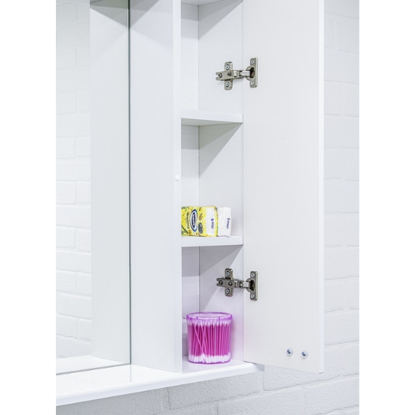 Шкаф-зеркало Классик 60 правый АЙСБЕРГ DA1053HZ Домино корпус изготовлен из ЛДСП, а фасад из ЛМДФ, покрыт пленкой ПВХ. На дверях установлены петли с доводчиком. Максимальная влагостойкость изделия обеспечивается за счет приклеивания кромки ПВХ высокотехнологичными полиуретановыми клеями.