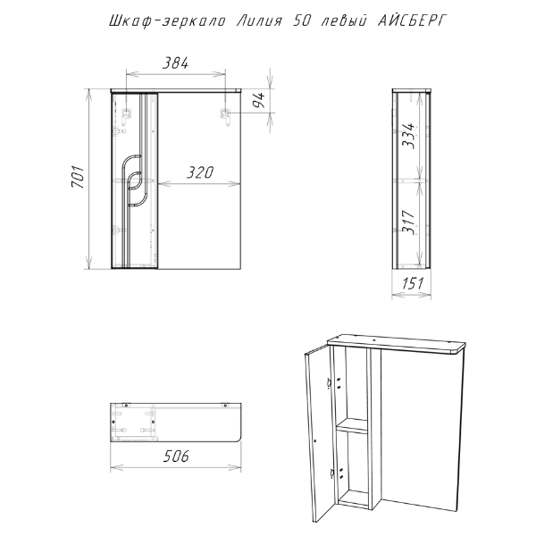 Шкаф-зеркало Лилия 50 левый АЙСБЕРГ DA2004HZ