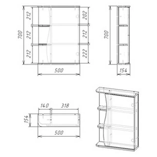 Материал изготовления: ЛДСП, МДФ, зеркало