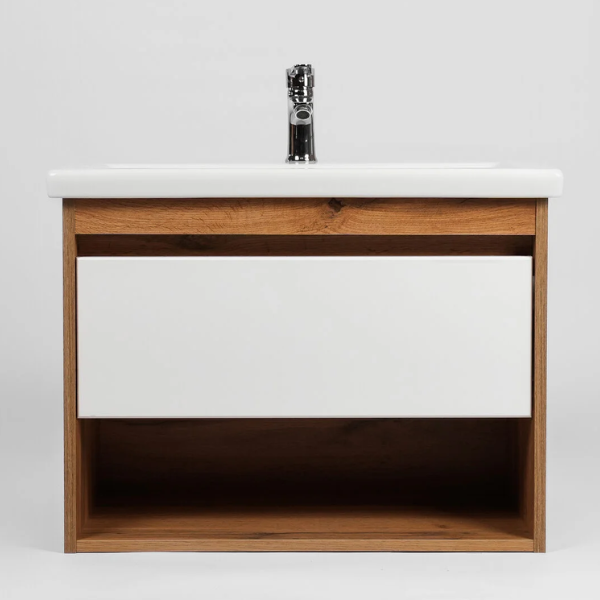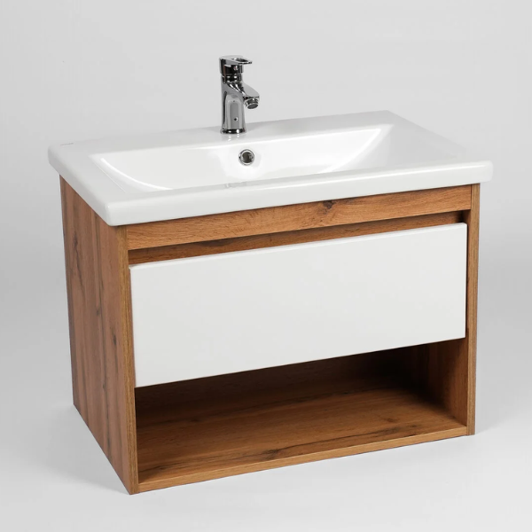Тумба-умывальник подвесная Viant Бостон VBOS50CO-T1YP с одним выдвижным ящиком и пространством открытого хранения укомплектована керамической раковиной Cersanit Como 50. Изготовлена в соответствии с требованиями ГОСТ 16371-93 и имеет декларацию соответствия