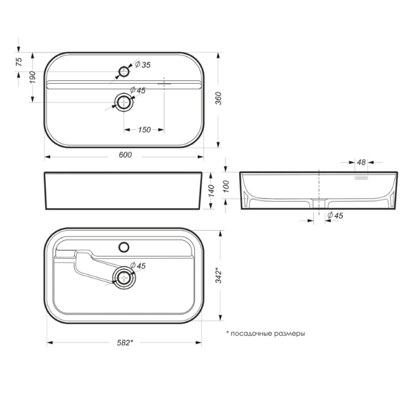 Умывальник накладной SANITA LUXE Infinity Shelf с четкой геометрией прямоугольника и закруглением граней. Накладной умывальник Infinity Shelf имеет универсальный размер 600х360 мм и обтекаемую форму, облегчающей уборку. Широкая полочка позволяет подобрать невысокий смеситель и разложить ванные принадлежности.