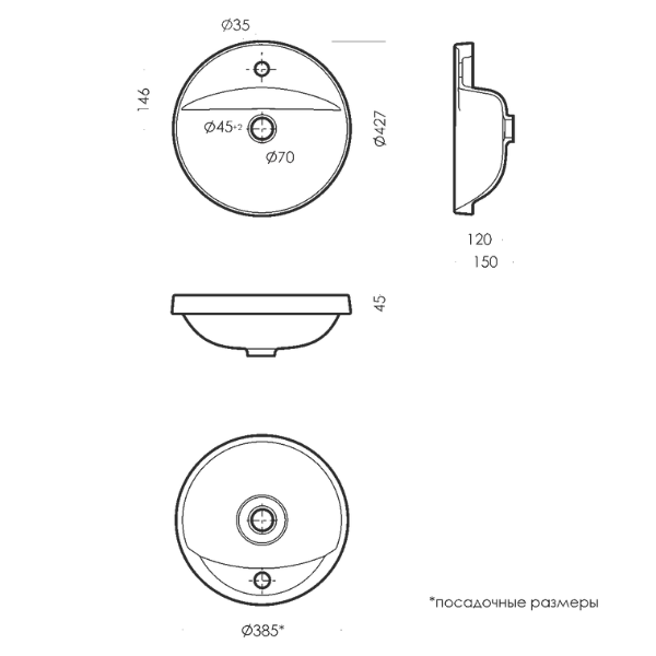 Умывальник врезной Art Inside SANITA LUXE выверенной шарообразной формы и с плавными линиями, идеальными для простой и быстрой уборки. Модель удобна даже для небольших ванных комнат за счет компактности, которая сочетается с функциональной глубиной умывальника.