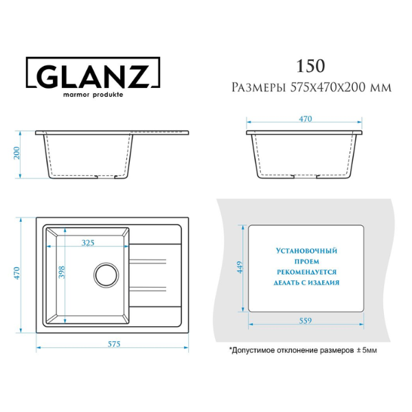 Мойка Камень глянец (Песочный) L150G34 Glanz изготовлена по современной технологии литьевого камня с дополнительной антибактериальной защитой видимой части мойки покрытием Гелькоут. Продукция из литьевого камня экологически чистая, обладает высокой прочностью и стойкостью к воздействию агрессивных сред: