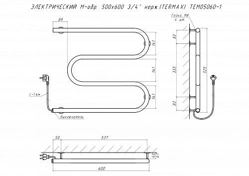 Полотенцесушитель электрический M-образный 50*60 смTEM05060-1, TERMAX