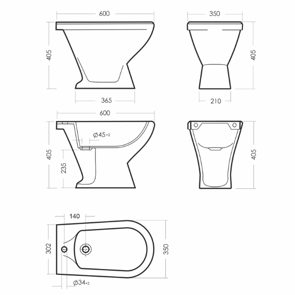 Размеры биде: 260 x 640 x 406 мм