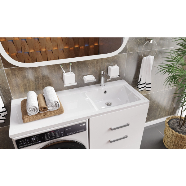 Умывальник над с/маш. "Космос -120" правый Andrea изготовлен из литого мрамора, устойчив к истиранию, прост в механической обработке и монтаже – что позволяет легко адаптировать форму под любое пространство. В раковине не предусмотрено отверстие под перелив.