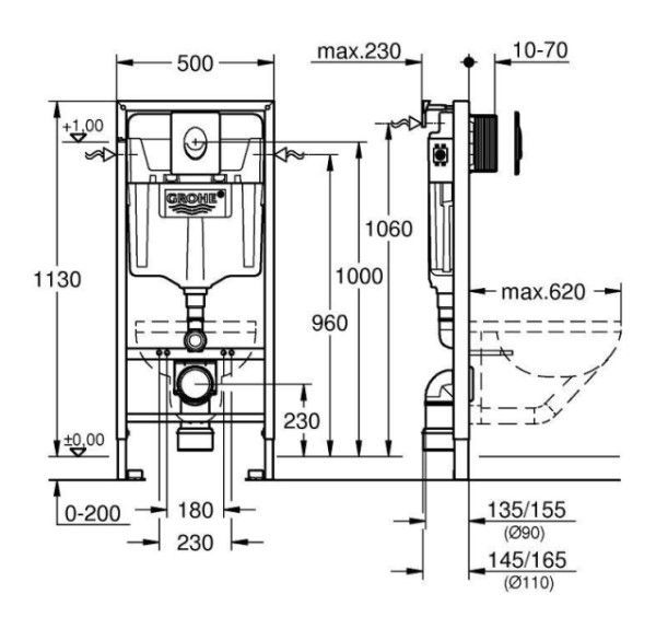 Инсталляционная система GROHE Rapid SL поставляется совместно со смывной панелью Skate Air цвета хром. Используя систему быстрого монтажа GROHE QuickFix® инсталляционная система устанавливается очень быстро. Стальной каркас рамы инсталляции сертифицирован при нагрузке свыше 400 кг. Установленный перед стеной или в гипсокартонную перегородку, подвесной унитаз и бачок скрытого монтажа обеспечивает оптимальный уровень гигиены и простоту уборки ванной комнаты. Благодаря технологии двойного смыва GROHE EcoJoy®, водопотребление инсталляционных систем Rapid SL может быть снижено на 50%. Созданные с применением технологии GROHE Whisper® для повышенного уровня шумоизоляции системы инсталляции серии Rapid SL предоставляют оптимальный уровень защищенности от шума.