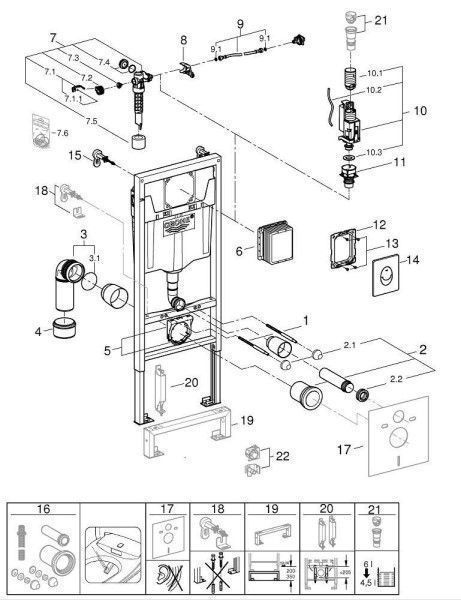 Система инсталляции "GROHE RAPID SL"3в1 в сборе для подвесного унитаза с накладной панелью Skate Air