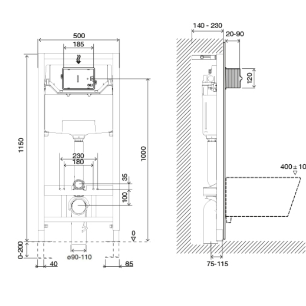 Система инсталяции 120 ECO sanitarblok mechanik 879236 OLI совместима со всеми видами подвесных унитазов. Подходит для легких стен. Рама испытана нагрузкой 400 кг. Фановый отвод для слива, регулируемый по глубине. Металлические крепления. Регулируется по высоте от 0 до 200 мм.