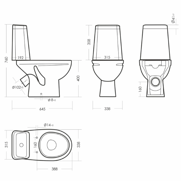 Размеры унитаза-компакта: 338x645x760 мм