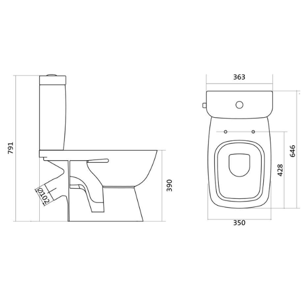 Унитаз-компакт безободковый "Нео Лайт", косой выпуск 1WH302471 Santek с тонким дюропластовым сиденьем с функцией мягкого закрывания и быстрого снятия, изготовлен из сантехнической керамики. Горизонтальный выпуск и двухрежимный слив.