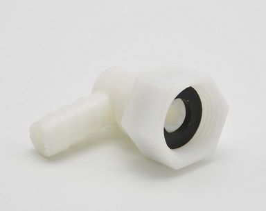 Штуцер угловой пластиковый (Фитинг концевой) 1/2"г-12мм применяется для присоединения шлангов душевых кабин.