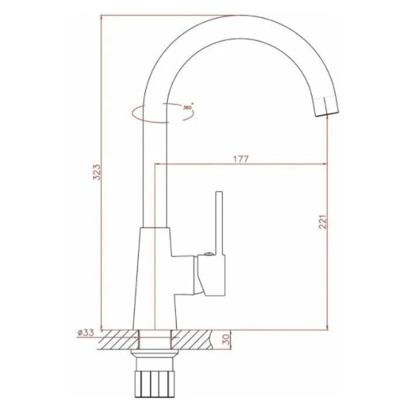 Cмеситель Haiba для кухни однорычажный классика высокий, поворотный.