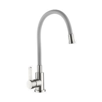 Смеситель для кухни с гибким изливом АК77105-8 Белый (без подводки) нерж. AquaKratos
