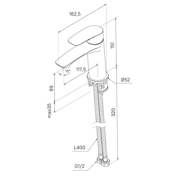 Высота излива: 89 мм