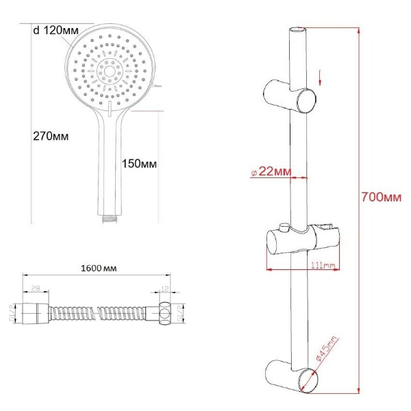 Душевая стойка ESKO SCS5Bимеет плавающий держатель лейки FightFix ,подвижное крепление FreeMount Комплектация: Душевой шланг 160см (в армир. ПВХ. оплетке ,FreeRotation) , Душевая лейка (5 реж., диаметр 120мм), монтажный комплект