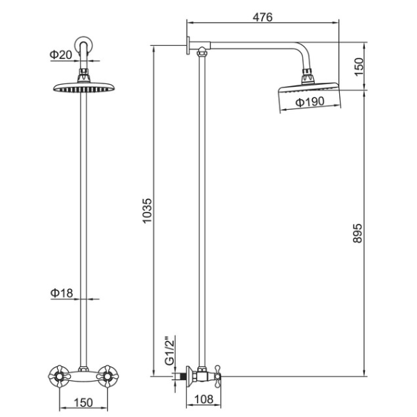 Душевая стойка со смесителем и тропическим душем, латунь А8176 Accoona с двухвентильный смесителем, цвет хром. Комплект: смеситель в сборе, душевая лейка, крепление лейки к стене. Эксцентрики для установки смесителя 1/2"х3/4", а также все необходимые прокладки в комплекте .