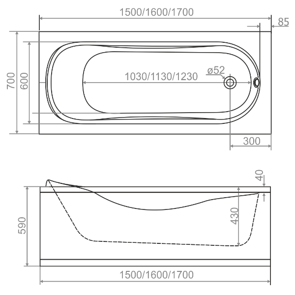 Ванна акриловая Classic (прямоугольная) 1500*700 DS02CI15070 Domani-Spa