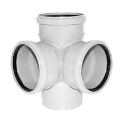 Крестовина канализационная используется в безнапорных канализационных системах сточных вод внутри зданий, предназначена для подключения к трубопроводу дополнительных ответвлений в одной плоскости.