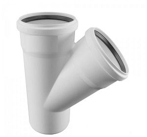 Тройник применяется в канализационной системе, позволяет быстро и без труда подключать к основной трубе дополнительные ответвления под углом 45°. Присоединение раструбное с резиновым уплотнителем.