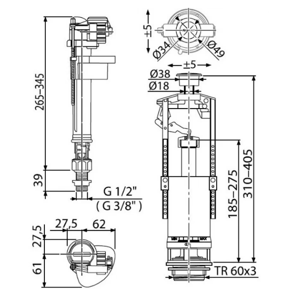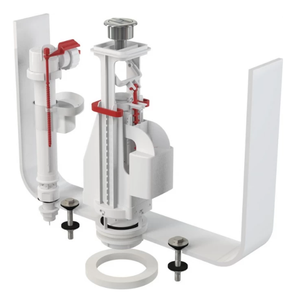 Арматура с нижн. подв. 1/2 ALCAPLAST SA2000SK A18-1/2"(стоп-кнопка) для керамических бачков. Подходит для замены существующего механизма похожего назначения. Встроенный фильтр для улавливания грубых нечистот. Плавное закрытие механизма. Возможность регулировать уровень воды. Низкая чувствительность к перепадам давления в водопроводе. Конструкция позволяет регулировать высоту механизма в зависимости от высоты бачка. Поплавок для настройки объема спускаемой воды. Возможность установки кнопки мимо оси спускного механизма. Кнопка DUAL хромированная