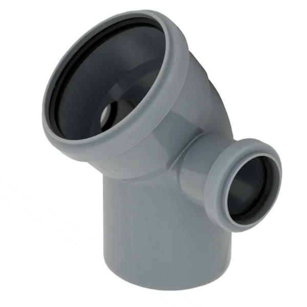 Отвод канализационный с правым выходом используется в безнапорных канализационных системах сточных вод внутри зданий, для изменения направления трубопровода внутренней канализации под углом 45° и для подведения к стояку или трубопроводу дополнительного сантехнического прибора.