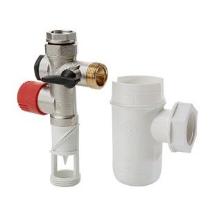 Группа состоит из латунного никелированного корпуса, в котором расположены шаровой кран с затвором из полисульфона, пружинный обратный клапан и предохранительный клапан большой производительности по воде и водяному пару.