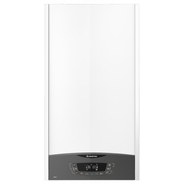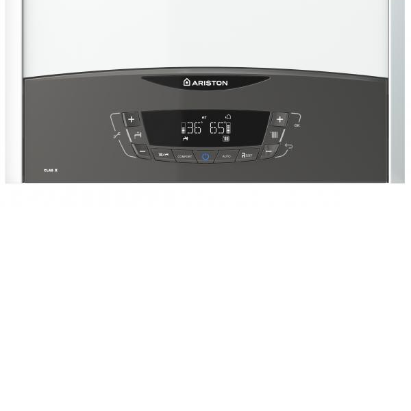 Котел настенный газ. одноконтур. ARISTON Clas X SYSTEM 28 CF NG с открытой камерой сгорания (способ образования горючей смеси, когда воздух берется из помещения, а удаление продуктов сгорания осуществляется естественным способом за счет тяги, создаваемой стационарным вертикальным дымоходом). По умолчанию котел работает на природном магистральном газе, но при необходимости котел очень просто перестраивается для работы на сжиженном газе, нужно лишь использовать комплект жиклеров. Для работы платы управления настенного газового котла подключитесь к электрической сети 220 В. Чтобы сохранить гарантию производителя рекомендуется установить стабилизатор напряжения.