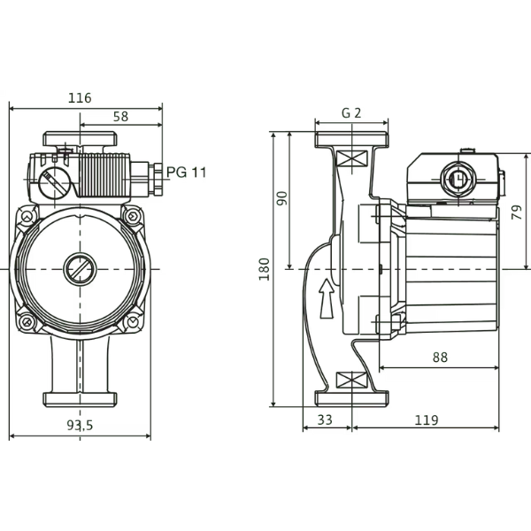 Патрубок на напорн. стороне DNd: G 2