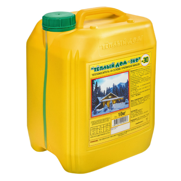 Готовый к применению, экологически безопасный теплоноситель на основе пропиленгликоля (зеленого цвета). Может разбавляться водопроводной водой до -20°С. Для тэновых и двухконтурных котлов – разбавление ОБЯЗАТЕЛЬНО! Теплоноситель "Теплый дом" выпускается на основе отечественного высококачественного этиленгликоля, обеспечивает непрерывную работу в течение пяти лет. Состоит из высококачественного пропиленгликоля с добавлением присадок, защищающих систему и отопительное оборудование от накипи, пенообразования и коррозии, при этом не оказывая агрессивного воздействия на герметичность системы.