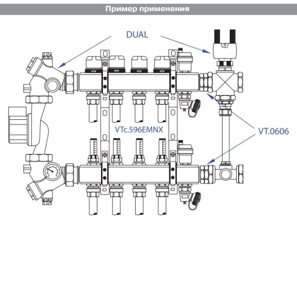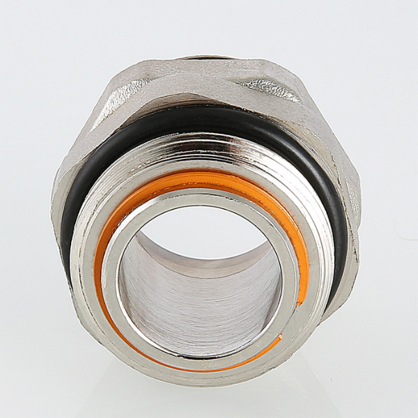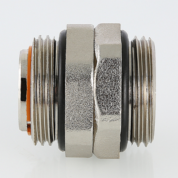 Соединитель для коллекторов 1" VT.0606.0 Valtec применяются для соединения коллекторных блоков VTc 594 EMNX и 596 EMNX между собой, с насосно-смесительными узлами COMBI и DUAL, байпасными группами VT.0666, 0667, 0668. Состоит из двух латунных никелированных резьбовых патрубков, соединенных между собой с помощью пружинной фиксирующей шайбы, что позволяет патрубкам вращаться относительно друг друга. Уплотнение – двумя кольцами из резины EPDM. Дополнительных герметиков не требуется.