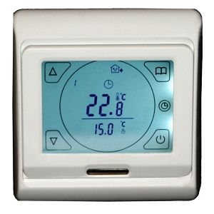 Программируемый терморегулятор со встроенным и выносным датчиками пола, с диапазоном регулировки температуры от +10℃ до +55℃, со светодиодным индикатором включения, ЖК-дисплеем на сенсорном управлении, степенью защиты силой тока, максимальной мощностью нагрузки, потребляемой мощностью, с электронным управлением, в пластиковом корпусе белого цвета. Используется в любых жилых, общественных и производственных помещениях.