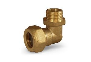 Угольник латунный с наружней резьбой быстросборный Easy Fix для соединения гофрированной трубы из нержавеющей стали.