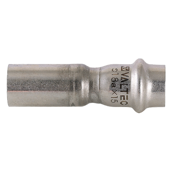 Вставка переходная из нержавеющей стали (VTi.905.I) применяется для соединения тонкостенных стальных труб в системах водоснабжения, отопления, других инженерных и технологических установках с рабочей температурой до 120 °С и номинальным давлением до 16 бар. Фитинг VTi.905.l обеспечивает при монтаже переход трубопровода с одного диаметра на другой. Достоинством бесштуцерных соединителей является малый коэффициент местного сопротивления (сужение канала практически отсутствует). Фитинг рассчитан на обжатие с помощью пресс-инструмента V-профиля.