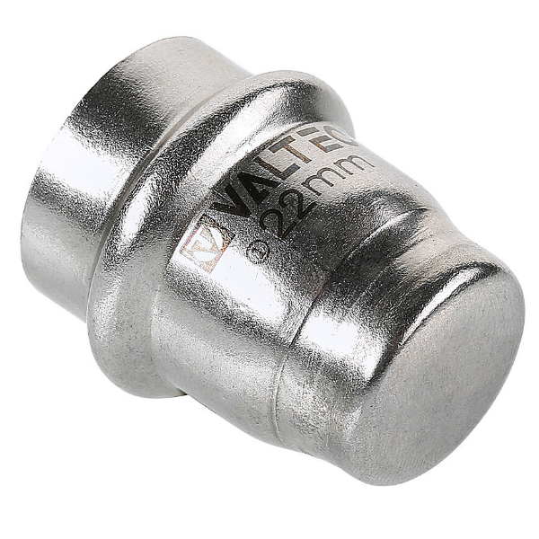 Пресс-фитинг из нержавеющей стали (VTi.961.I) применяется в качестве концевой заглушки тонкостенной стальной трубы (трубопроводы водоснабжения, отопления, иные инженерные и технологические установки с рабочей температурой до 120 °С и давлением до 16 бар). Пресс-соединение – бесштуцерное. Обжатие производится с помощью пресс-инструмента V-профиля.
