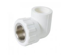 Угольник полипропиленовый комбинированный с внутренней резьбой используется для соединения трубопроводов горячего и холодного водоснабжения с резьбовыми фитингами под углом. диаметр: 32 резьба: 3/4"