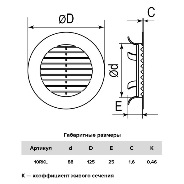Решетка вентиляционная пласт. с фланцем 10RKL белый ERA имеет одноэлементную конструкцию. Специальные фиксаторы помогают соединять RKL с круглыми воздуховодами без использования монтажных средств. Также они позволяют легко извлекать изделие для обслуживания.