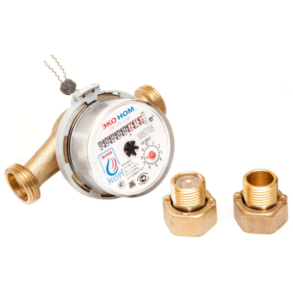 Счетчик воды универсальный ЭКО НОМ-15-110+КМЧ с обратным клапаном применяется для измерения объёма питьевой воды по СанПин 2.1.4.1074-01 и сетевой воды, протекающей по трубопроводам систем холодного и горячего водоснабжения. Предназначен для учёта потребления воды преимущественно в квартирах. Удобство монтажа позволяет установить счётчик как в горизонтальном, так и в вертикальном положении с минимальным влиянием на порог чувствительности. Преимущества: латунный корпус обладает высокой прочностью и коррозийной стойкостью; Крыльчатка из полипропилена (PP) выдерживает высокую температуру более 90 °С и значительные нагрузки, не содержит бисфенол А; Антимагнитная защита; Не чувствительны к качеству воды; Длина прямого участка обеспечивается комплектом монтажных частей, входящих в комплект поставки.
