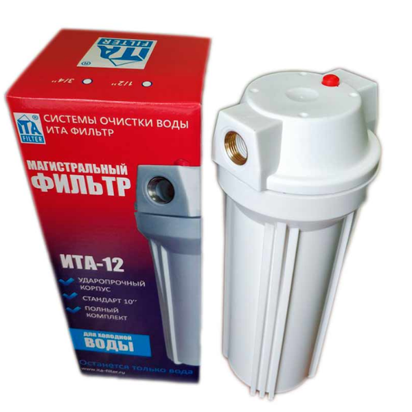 Фильтр магистральный ITA-12-3/4 предназначен для очистки холодной воды, может использоваться для предварительной очистки для фильтров, установленных далее по магистрали.