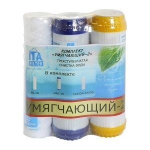 Комплект картриджей "Умягчающий 2" для питьевых систем, удаляет отложения, хлора, органические и неорганические соединения, пестициды, нефтепродукты, тяжелые металлы, устраняет неприятный запах и улучшает вкус воды