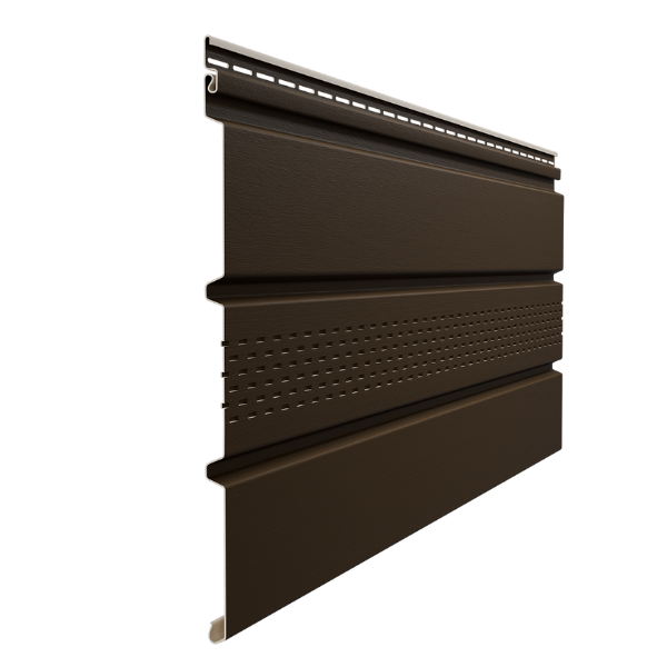Софит Docke PREMIUM с центральной перфорирацией (Шоколад) 3м PSTT-1050 Docke применяются не только для красоты, это защита от разрушения конструкции кровли. Софиты с центральной перфорацией наиболее популярны для отделки карнизных свесов кровли, такие панели обеспечивают вентиляцию, но затрудняют отвод теплого воздуха.