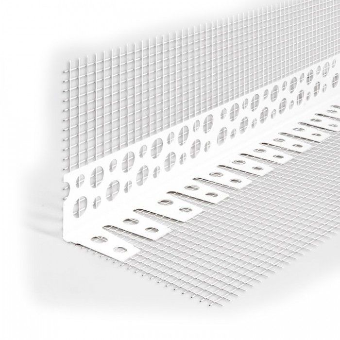 Уголок перфорированный ПВХ с сеткой 100х100 мм белый 2,5 м. Угол ПВХ с сеткой - усиливающая накладка, используемая для армирования, выравнивания, создания ребра