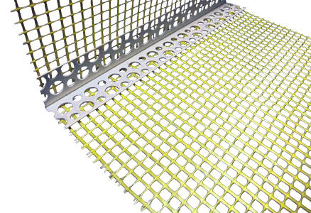 Угол ПВХ с армирующей сеткой применяется при монтаже фасадных работ, и для армирования внешних углов, оконных и дверных откосов при проведении штукатурных работ внутри здания.