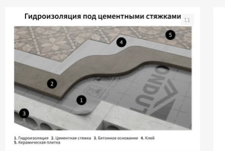 - гидроизоляция полов влажных помещений,