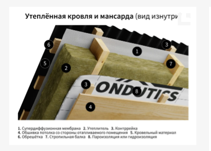 Двухслойная плёнка Ондутис Бейсик В с низкой паропроницаемостью, хорошей прочностью и водостойкостью. Обеспечивает защиту утеплителя от водяных паров изнутри помещения.